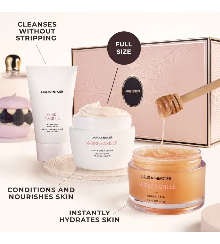 Откройте для себя роскошный уход за телом с набором Delicious & Decadent Ambre Vanille от Laura Mercier, который объединил лучшие продукты для очищения и глубокого восстановления кожи с фирменным ароматом бренда!
