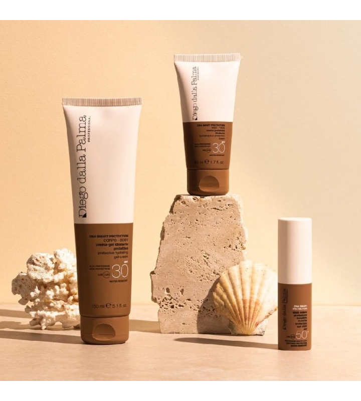 - DNA Smart Protection - эксклюзивный молекулярный комплекс от Diego dalla Palma, который активирует внутренние процессы регенерации клеток, защищая волокна коллагена и эластина от разрушительного воздействия солнечных лучей.