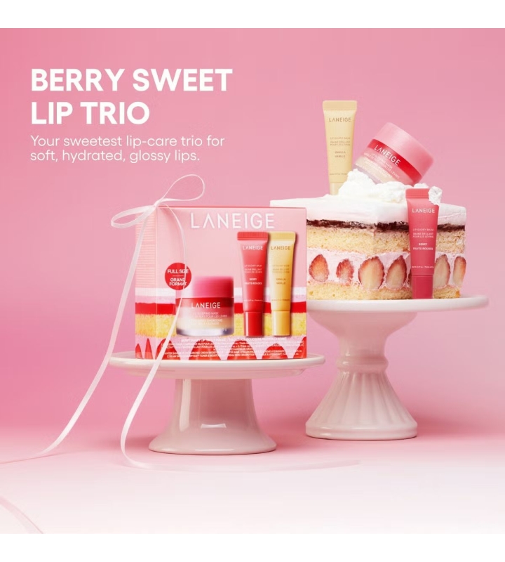 Откройте для себя Berry Sweet Lip Trio Set от Laneige – роскошный набор для ухода за губами, который увлажняет, питает и придает сияние с утра и до самого вечера.