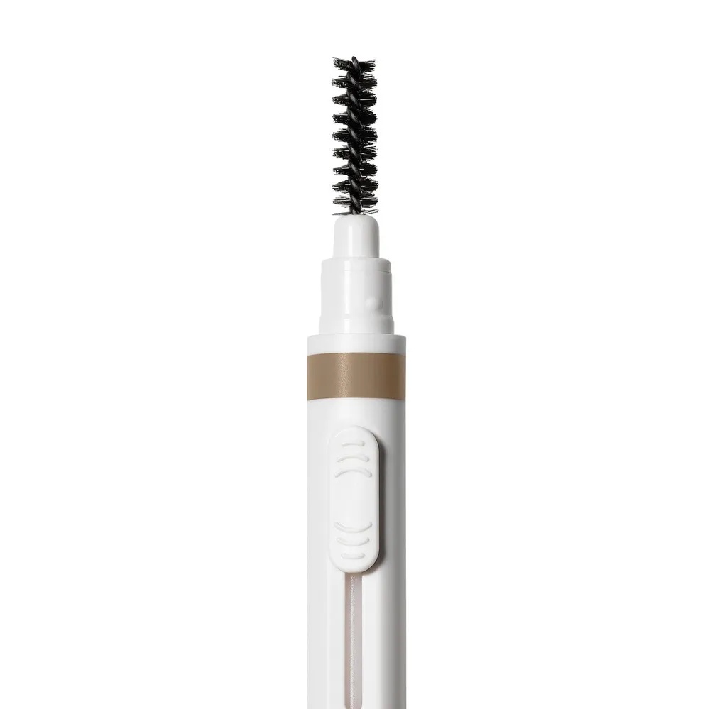 С одной стороны расположена щеточка для расчесывания бровей и растушевки карандаша, с другой — сам карандаш, который имеет скошенный грифель, позволяющий точно, быстро и аккуратно очертить и заполнить форму бровей.