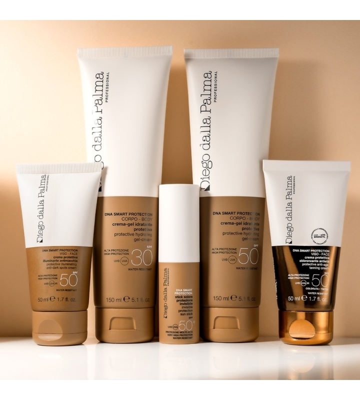 - DNA Smart Protection - эксклюзивный молекулярный комплекс от Diego dalla Palma, который активирует внутренние процессы регенерации клеток, защищая волокна коллагена и эластина от разрушительного воздействия солнечных лучей.