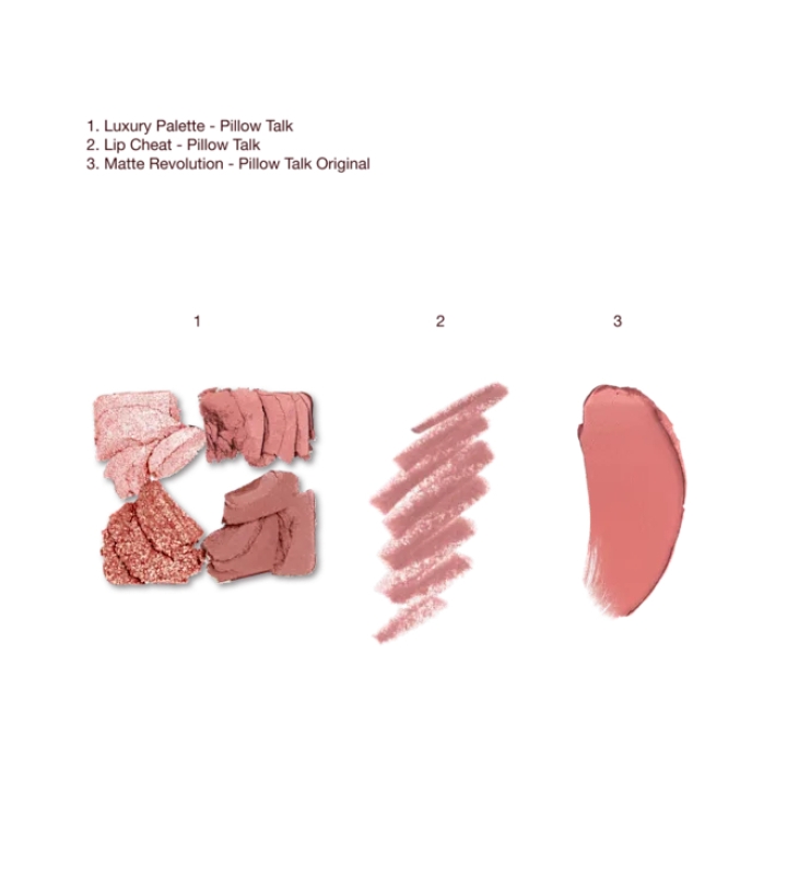 Набор создан вокруг легендарного оттенка Pillow Talk — розово-нюдового тона, который повторяет природную пигментацию губ и кожи, усиливая естественную привлекательность без эффекта «перегруженного» макияжа.