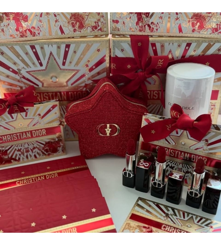 Лимитированная косметичка Trousse Pouch Beauty Bag Red от Dior в глубоком красном цвете с изысканными золотистыми переливами, словно отблеск тысячи огней иллюминации, воплощает магию праздника и украшена фурнитурой от художника Пьетро Руффо!